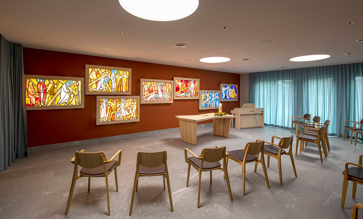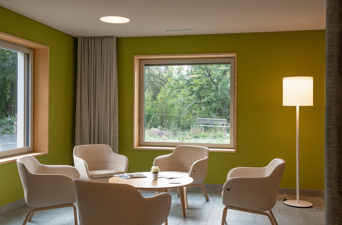 Für das Pflegezentrum Luegeten entstanden umfassende Architekturfotografien, die das Gebäude in seinem architektonischen und landschaftlichen Kontext zeigt. Die Aufnahmen verbinden Aussenansichten, Innenräume und die Gestaltung der Umgebung zu einem stimmigen Gesamtbild.