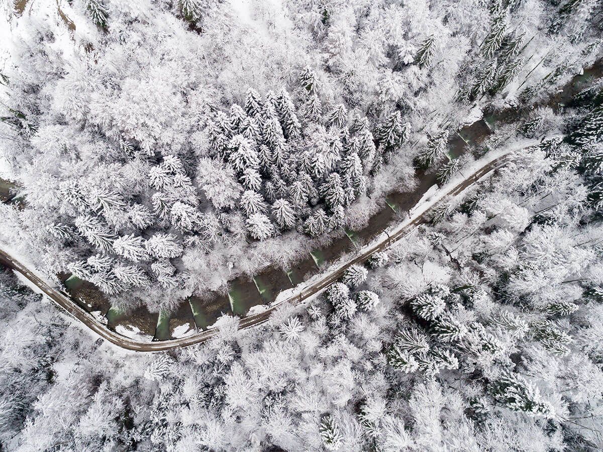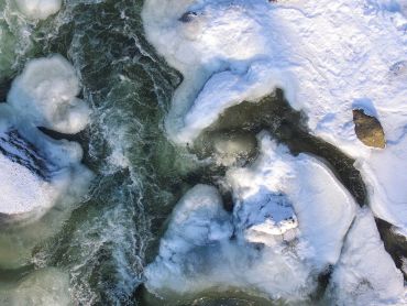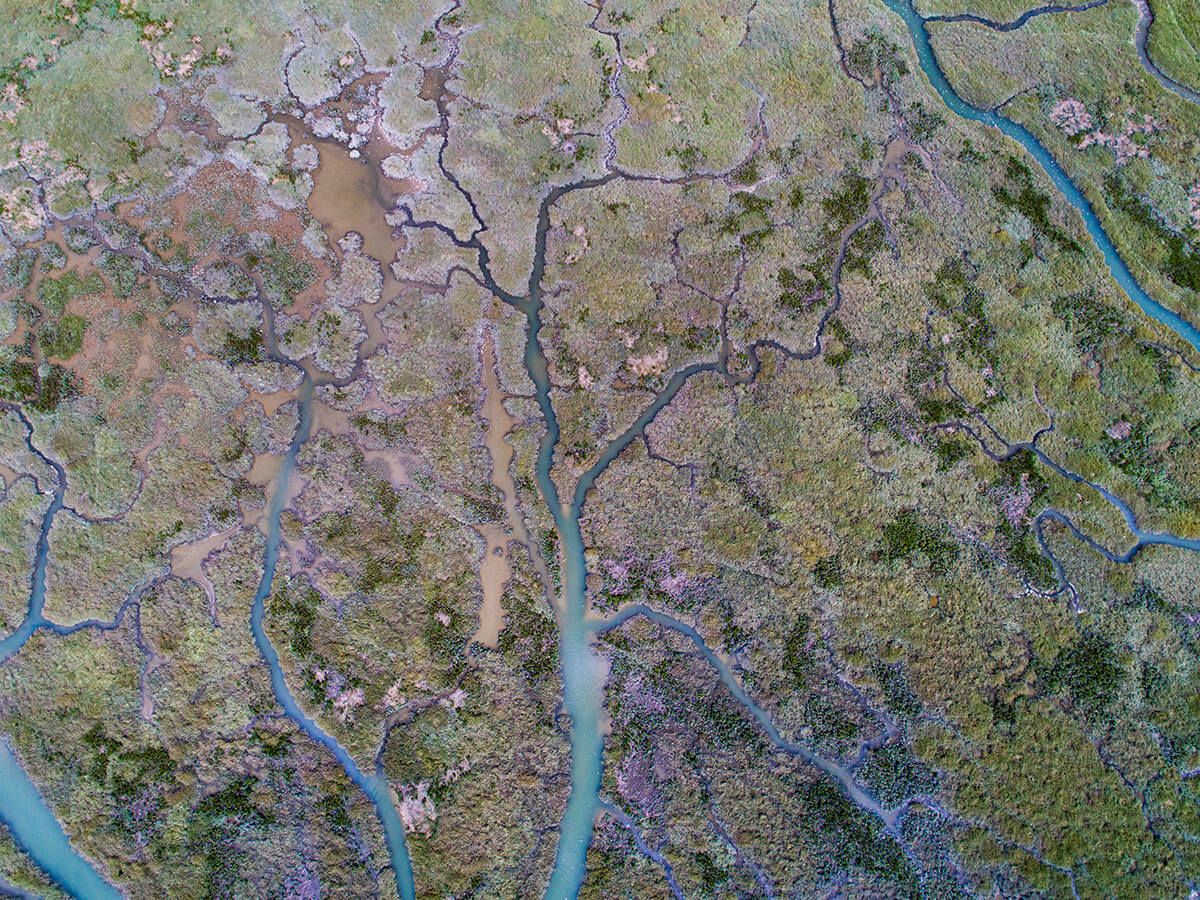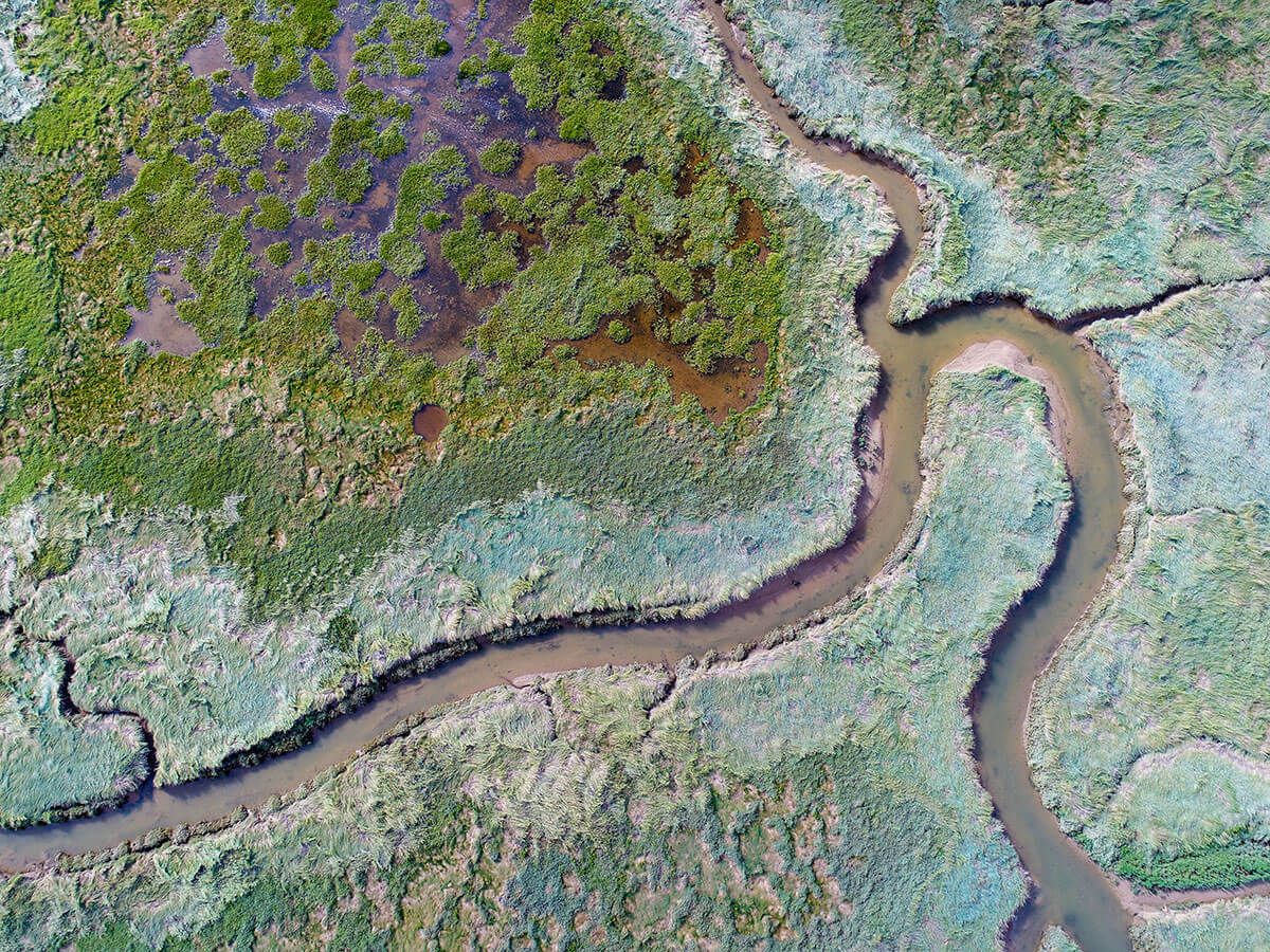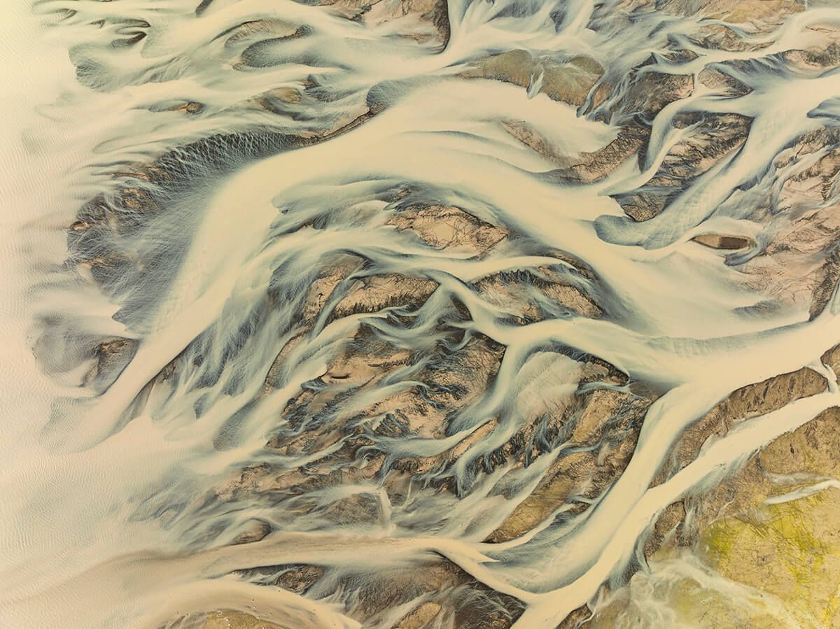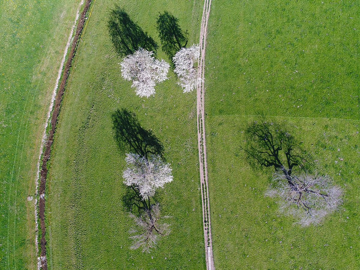 Eine Drohne steigen lassen. Zur richtigen Zeit am richtigen Ort. Aus der Luft geerdete Bilder erfassen, welche die Natur faszinierend grafisch und zuweilen auch irritierend abstrakt zum Ausdruck bringen. Eine Spezialität und Leidenschaft von Franziska Stocker.