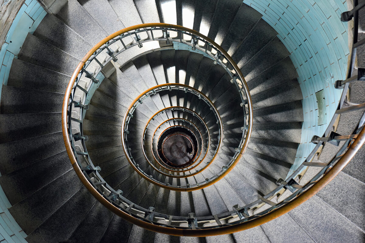 Wendeltreppe im Phare d’Eckmühl, Bretagne