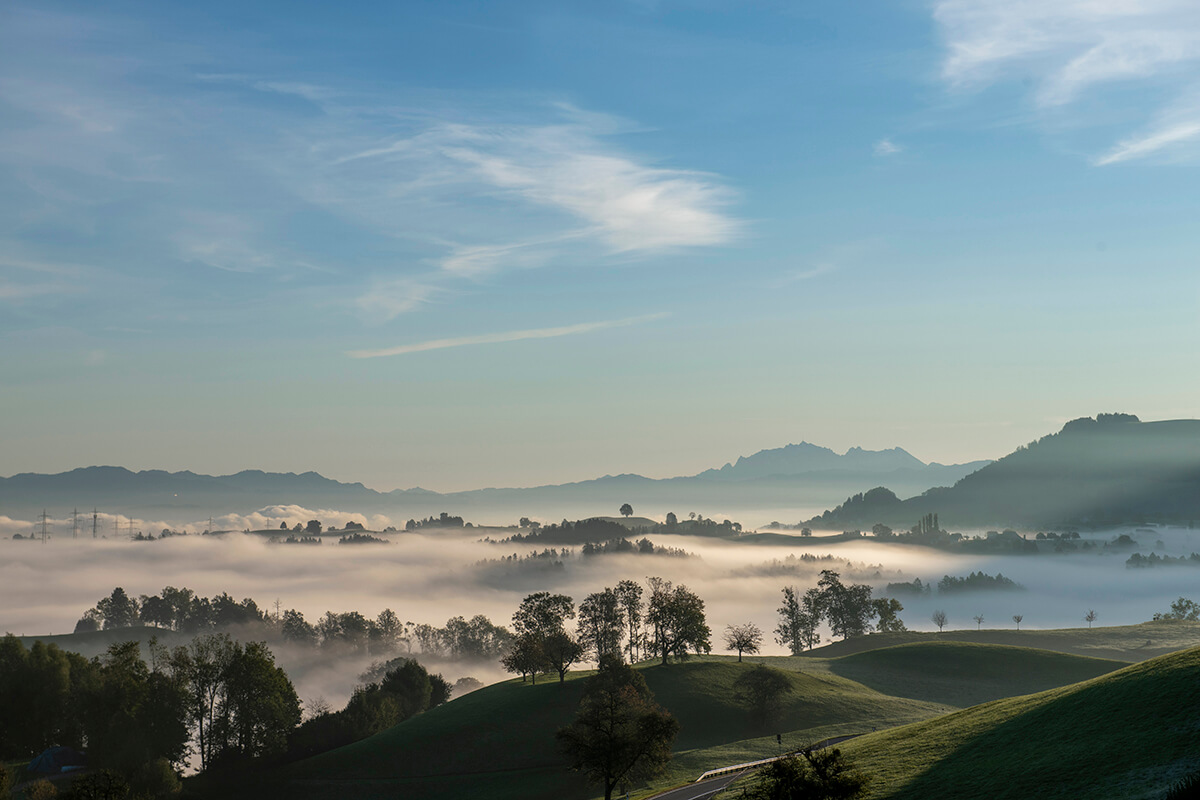 Nebelmeer, Blick von Menzingen Richtung Säntis